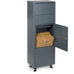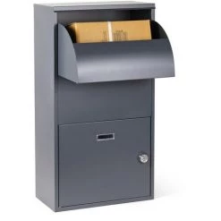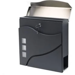 WILTEC Boite Lettres Design V28 Anthracite Compartiment Journaux Fixation Murale Revêtue Poudre Inox
