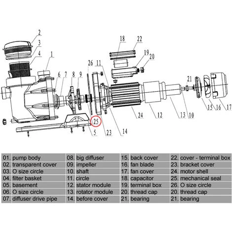 Pièce détachée: Pompe de Piscine WilTec No. 50919 / 50920 / 50921 joint K mécanique