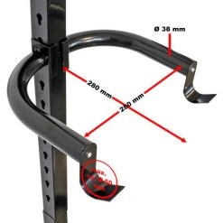 Deux bras de support superposés reposent sur la barre verticale. Chaque bras est équipé d’une surface d’appui, qui convient aux cadres de vélo ayant un diamètre allant jusqu’à 60mm. Étant donné que la hauteur des bras de support peut être réglée, le système d’accrochage convient à des vélos de différentes tailles. Pour cela, il suffit de lever ou d’abaisser les bras de maintien et de les fixer dans la position souhaitée.