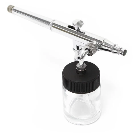 Cet aĂ©rographe professionnel ne s’adresse pas seulement aux utilisateurs professionnels. Le modèle est livrĂ© avec trois buses (d’un diamètre de 0,2 / 0,3 / 0,5 mm) et convient donc aussi aux peintures ou laques aux pigments grossiers. Grâce aux godets Ă peinture de dimensions diffĂ©rentes d’une contenance de 7 et 20 ml cet aĂ©rographe convient aussi bien Ă d’amples travaux qu’Ă des travaux avec de de petites quantitĂ©s de peinture. Le rĂ©glage du mĂ©lange peinture/air se fait par la fonction de rĂ©gulation double ou Double-Action. La quantitĂ© de passage de peinture peut ĂŞtre rĂ©glĂ©e par la vis au bout du manche.