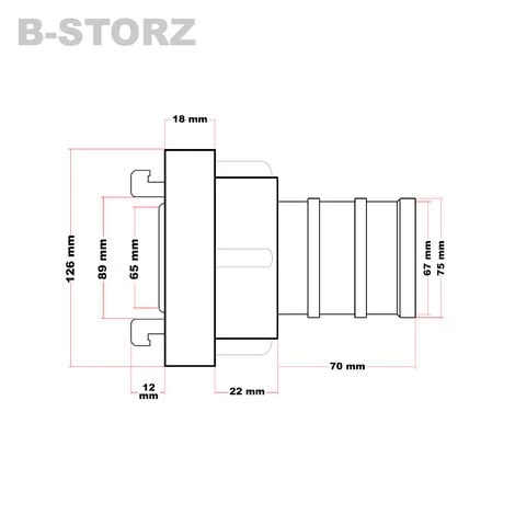 Vous recevrez un accouplement Storz (B/75mm) avec long manchon rotatif.