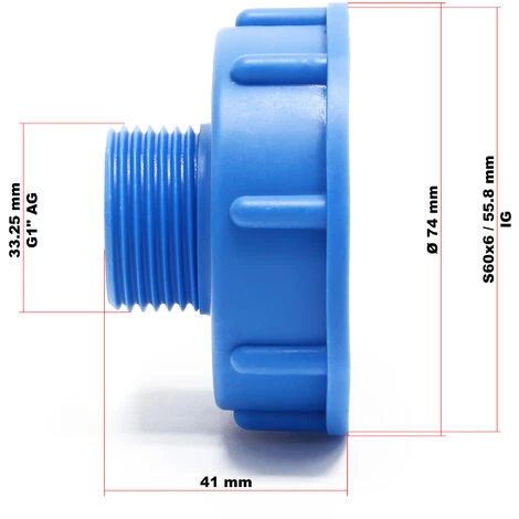 Adaptateur IBC Filetage grossier S60x6 Filetage mâle 25mm (1″)