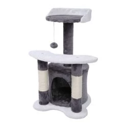 Arbre à chat 65 cm gris/ blanc Sisal Plateforme Niche et Balle de jeux