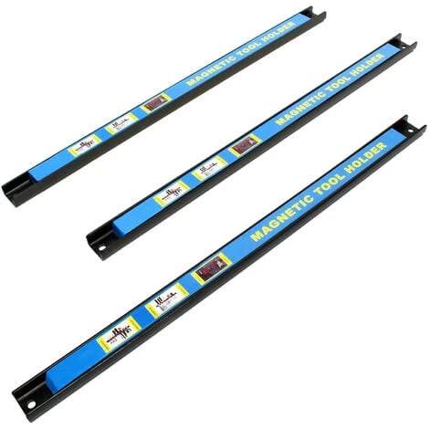 L‘ensemble se compose de trois barres fabriquées en acier au carbone robuste et durable. Avec une longueur totale de 46 cm et une puissance magnétique de 1000-1200 gauss, la barre supporte aisément des outils avec un poids de 13,6 kg par barre. Les trous pré-percés dont sont munis chaque barre vous permettront une fixation au mur ou bien sur les bords de table ou établis très simple et à la hauteur que vous désirez. Le matériel de montage est inclus à la livraison.