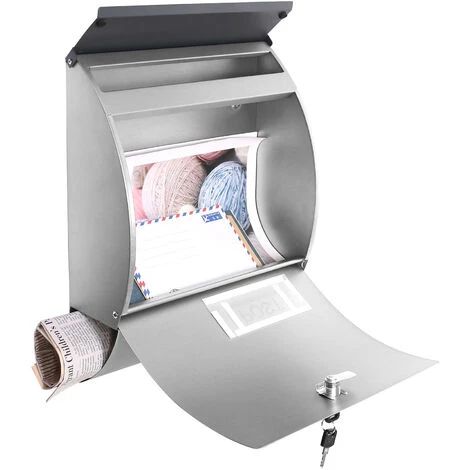 Étant fabriquée en acier inoxydable (201) de haute qualité, elle a une large ouverture pour vos lettres, est équipée d’une serrure et vous sera livrée avec deux clés. Le matériel de fixage est également inclus dans la livraison. Par surcroît, il y a un porte-journaux à la partie inférieure de la boîte aux lettres ; ainsi, vos journaux n’auront plus besoin d’être déposés devant la porte de votre maison, dans l’humidité, mais ils auront une place sèche où ils pourront attendre que quelqu’un les rentre. Fini le temps où le journal était introduit de force dans l’ouverture des lettres et qu’il n’y avait plus d’espace pour le courrier restant. Même pendant vos absences et vos vacances, cette boîte aux lettres est suffisamment large pour toutes vos lettres que vous devrez recevoir.