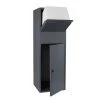 En effet, la boite aux lettres en gris en forme de colonne est créée de manière intelligente, grâce au système d’insertion des colis. Le rabat supérieur s’ouvre, le colis se met en place à l’intérieur. Dès que le rabat se ferme, le fond de la boite supérieure s’ouvre, pour que le colis puisse glisser vers la partie inférieure. Ensuite l’ouverture supérieure se referme, protégeant en même temps le colis du vol et laissant la place à un autre colis. Finalement, pour accéder à vos paquets, c’est bien simple, il suffit d’ouvrir la boite inférieure, fermée à clé.