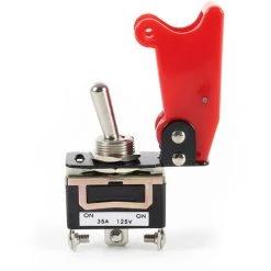 Relevez le capuchon du bouton d’arrĂŞt et le bouton est dĂ©verrouillĂ©. Faites alors fonctionner l’interrupteur Ă bascule qui Ă©tait cachĂ© jusqu’alors.