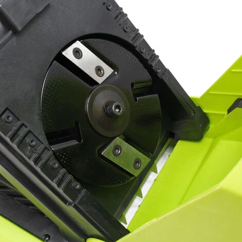 Le moteur d’une puissance de 2500 watts et la vitesse de coupe de 4050 tours/min permettent de broyer les branches dures jusqu’à 40 mm de diamètre. Un disjoncteur de sécurité mène à l’arrêt automatique de la machine en cas de surtension, ce qui a l’avantage de protéger le moteur de tout dommage.