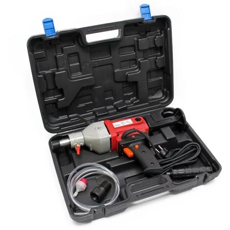 La carotteuse permet de réaliser des résultats de forage très précis, sans formation de poussière. Cet outil est particulièrement apprécié pour sa précision et la simplicité de son utilisation. Grâce au puissant moteur de 2080 watts, l’appareil atteint jusqu’à 1700 tours par minute, que vous pouvez régler en continu selon vos besoins. La perceuse est également équipée d’un porte-outil de 31,75 mm (1¼ pouce -7 UNC) filetage extérieur. Le diamètre de forage est compris entre 12 et 110 mm.