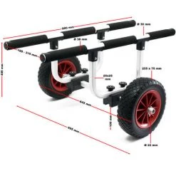 Chariot de transport Alu 90kg Kayak Roue PU Ø26cm & Largeur réglable