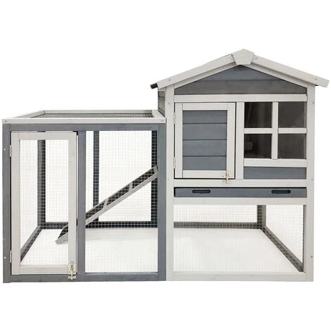 Clapier à lapin gris Enclos Abri soulevé