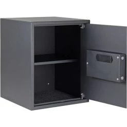 Le coffre-fort, d’une taille de 400 × 300 × 500 mm (LoxLaxHa), reprend vos documents importants ainsi que vos objets de valeur. Les parois du coffre-fort ont une épaisseur de 1,5 mm, le matériau de la porte est d’une épaisseur de 4 mm. Grâce aux trous pilotes, le coffre-fort peut se monter au mur ou au sol.