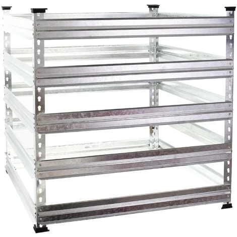 En métal galvanisé, ce matériau de base du composteur lui confère une grande stabilité, durabilité et protection contre les intempéries. Ni la neige, ni le soleil, ni le vent ne risquent de l’endommager. Les barres transversales peuvent être disposées selon vos besoins individuels. Les parois ne se ferment pas mais restent ouvertes et dégagées, fidèlement à la technique de recyclage classique, qui se base sur à un déroulement en plein air, et qui consiste simplement à verser les déchets organiques dans le composteur. Les barres transversales veillent à maintenir la masse en place. Au bout d’un certain moment, une masse de déchets organiques s’accumule avant que la nature ne suive son déroulement naturel : les champignons et les bactéries commencent la décomposition des déchets, les molécules se divisent, l’énergie se libère, générant une température à l’intérieur de la masse allant jusqu’à 70 °C. Par la suite, les polluants et les germes commencent à s’éliminer sous l’effet de la chaleur, laissant le champ libre aux nutriments. Pour que le procédé atteigne la totalité de la masse, il est indispensable d’empiler le tas de compost après quelques mois. Le résultat final consiste en un sol riche en éléments nutritifs de grande qualité. Les végétaux cultivés dans un sol amendé avec du compost s’avèrent moins prompts à souffrir de maladies et de parasites, et les rendements sont des plus prometteurs.