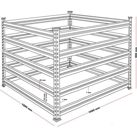 Composteur de jardin en métal 100 x 90 x 90cm 900 litres Bac à compost