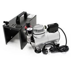 La solution intelligente: l’appareil idéal et très perfomant pour tous les travaux de pulvérisation que ce soit pour débutants ou pour professionnels, à utiliser dans le modélisme, la céramique, la poterie, la cosmétique, les salons de manucure, les casques, les reproductions techniques, le tanning, le tatouage, le textile, les studios Nail-Art, les travaux de peinture à eau, ou pour simple pulvérisation. De poids léger et facile à transporter. Très silencieux avec 47 décibels seulement. Le compresseur est totalement automatique et pratiquement sans vibrations. Il fonctionne sans huile et donc sans air pollué. Avec filtre à eau, régulateur d’air comprimé et manomètre.