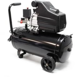 Le combiné qui rassemble une lubrification à l’huile, un moteur puissant et un volume de réservoir d’air comprimé de 50 litres, permet un travail rapide et ininterrompu. Bien que ce compresseur d’air ne soit pas adapté aux travaux de peinture en raison de l’utilisation de l’huile, il reste résistant à l’usure et peut être utilisé sans problèmes sous de fortes charges. La pression peut être réduite à 2,7 bars (40 psi) ou 6,2 bars (90 psi) selon les besoins. Grâce à la poignée pratique ainsi que les roues qui sont fixées sous le compresseur, celui-ci jouit par conséquent d’une haute flexibilité et peut être déplacé rapidement et facilement vers le lieu d’utilisation.