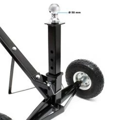 | Application / Information / Caractéristiques | Réglage de la hauteur de la boule d’attelage: 455/495/530/570/605/645 mm (± 5 mm) Corps : acier Roues : pneumatiques |