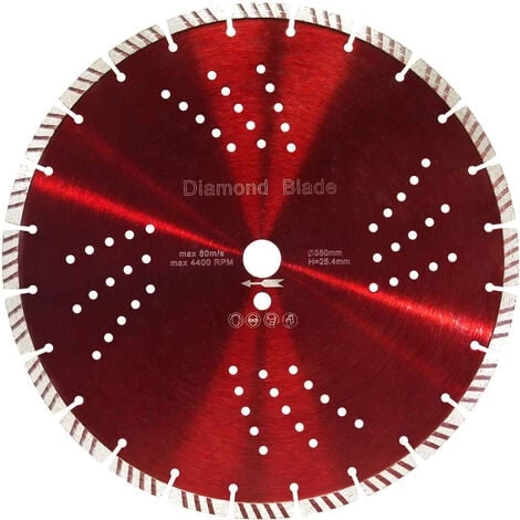 Disque diamant à tronçonner Ø350mm Alésage 25,4mm Segment Turbo 10mm