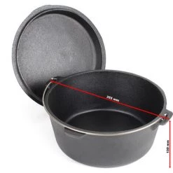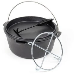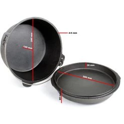 Une marmite Dutsch Oven en fonte avec couvercle assorti représente l’ustensile parfait pour la cuisine en plein air. Que ce soit sur un foyer permanent, un feu de camp ou un espace barbecue, la marmite d’une capacité de 10 litres vous permet d’étendre la préparation des aliments en plein air au-delà du barbecue normal. Pour un support sûr, le faittout Dutch Oven est doté de pieds afin qu’il tienne également de manière stable sur des surfaces inégales.