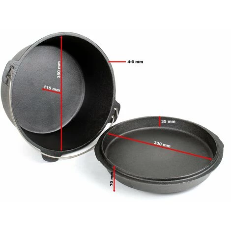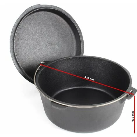 Une marmite Dutsch Oven en fonte avec couvercle assorti représente l’ustensile parfait pour la cuisine en plein air. Que ce soit sur un foyer permanent, un feu de camp ou un espace barbecue, la marmite d’une capacité de 12 litres vous permet d’étendre la préparation des aliments en plein air au-delà du barbecue normal. Pour un support sûr, le faittout Dutch Oven est doté de pieds afin qu’il tienne également de manière stable sur des surfaces inégales.