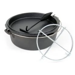 Une marmite Dutsch Oven en fonte avec couvercle assorti représente l’ustensile parfait pour la cuisine en plein air. Que ce soit sur un foyer permanent, un feu de camp ou un espace barbecue, la marmite d’une capacité de 8 litres vous permet d’étendre la préparation des aliments en plein air au-delà du barbecue normal. Pour un support sûr, le faittout Dutch Oven est doté de pieds afin qu’il tienne également de manière stable sur des surfaces inégales.