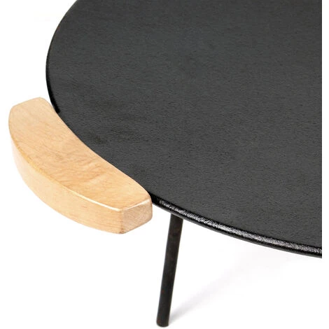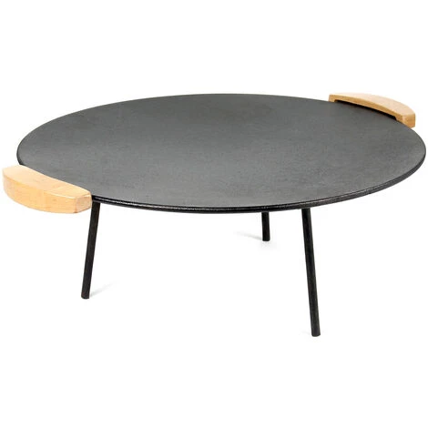 Dutch Oven Plaque Gril Barbecue Ø44cm Poignée bois 2 Pieds 20cm+32cm