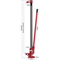 La longueur de 150 cm du cric à multi-usage est assez pratique, puisque vous pouvez le ranger dans chaque véhicule sans que cela encombre le coffre ou prenne trop de place. Le poids propre du cric est de 15 kg.