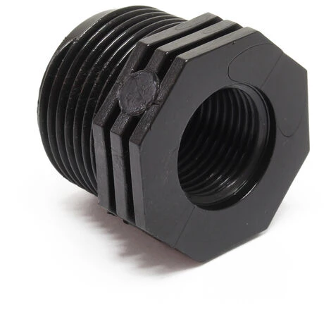 Un mamelon de réduction avec filetage extérieur de 32,89 mm (1″) et filetage intérieur de 26,16 mm (3/4″).