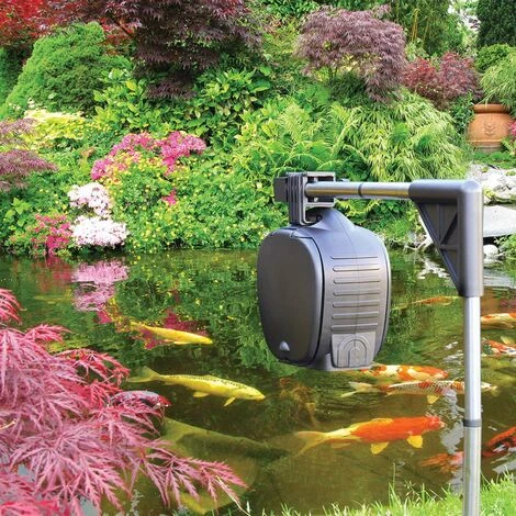 Ce nourrisseur à poissons automatique est idéal pour nourrir les poissons pendant votre absence ou vos vacances. L’appareil se fixe à la paroi de l’étang ou se suspend au-dessus de l’étang à l’aide du support. Le nombre de distributions se règle via le bouton rotatif ; ainsi, vous pourrez prévoir jusqu’à 6 distributions de nourriture par jour.