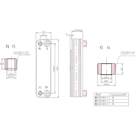 | Matériau des plaques / Matériau des raccords | Inox AISI 304 |