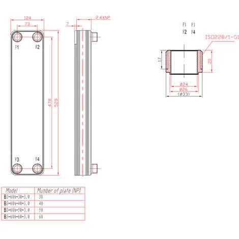| Matériau des plaques / Matériau des raccords | Inox AISI 304 |
