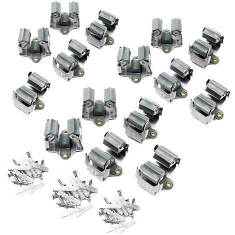 Les supports en acier de haute qualité et d‘application universelle, se fixent au mur à l‘aide de 2 vis seulement et sont compatibles avec la plupart des manches de différents outils de nettoyage ou de jardinage, qui ont une norme standard maximale de 5 cm. L‘outil s‘accroche rapidement, il suffit de l‘encliqueter dans le support, ne nécessite aucune autre forme de fixation et reste ainsi à porté de la main.