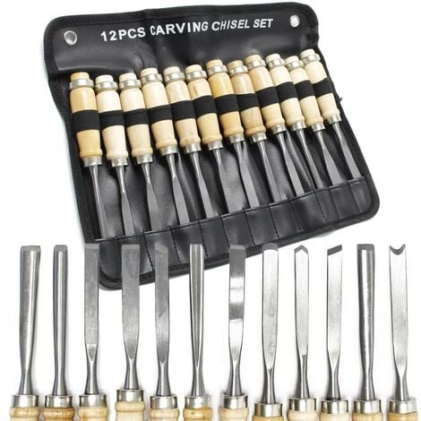 Kit de fers Ă sculpter 12 pcs. pour sculpture de bois avec fer plat & gouge