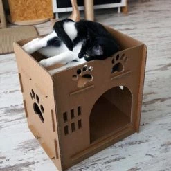 Faites plaisir à votre petit félin et offrez-lui un territoire propre à lui, qui est construit en forme de maisonnette personnalisée avec une entrée et des motifs décoratifs, qui confèrent une atmosphère chaleureuse et incitent