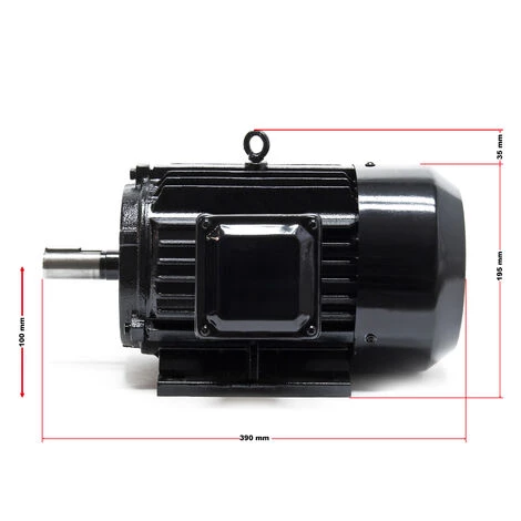 Le moteur est équipé d’un type de protection IP44 avec la forme de construction B3 (pied) avec un boitier de raccordement latéral. En outre, le moteur est équipé d’un arbre de 28 x 60 mm, dont la hauteur est de 100 mm.
