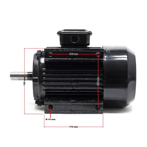 | Dimensions | Longueur de l’arbre : 60 mm Diamètre de l’arbre : 28 mm Espacement des trous : 140 x 160 mm Taille du moteur : 385 x 240 x 200 mm Traversée de câble : Ø 16,5 mm Cosses de câble : Ø 4 mm |