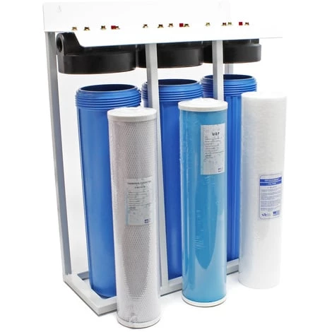 | Cartouches filtres compatibles (inclus) | Big Blue Filtre charbon actif Granular UDF-20L (Article 51138), Big Blue Filtre charbon actif Block CTO-20L (Article 51140), Agent Filtrant PP-20A-1 5µ (article 51184) |