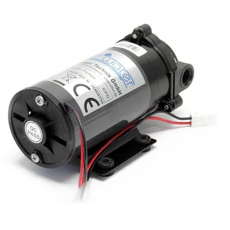 Une pompe booster à membrane intégrée au système de filtration à osmose inverse augmente la pression à l’intérieur du système et accroît la quantité d’eau filtrée ainsi que sa qualité. Par ailleurs, la pression importante contribue à un rendement plus important en eau pure.