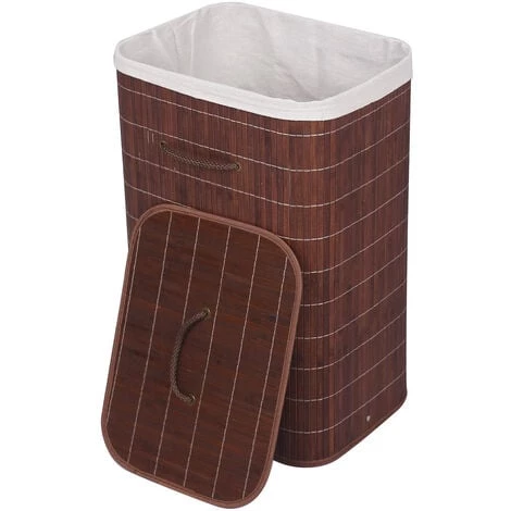 Panier à linge Bambou 72L Marron Sac à linge Rectangulaire Pliable