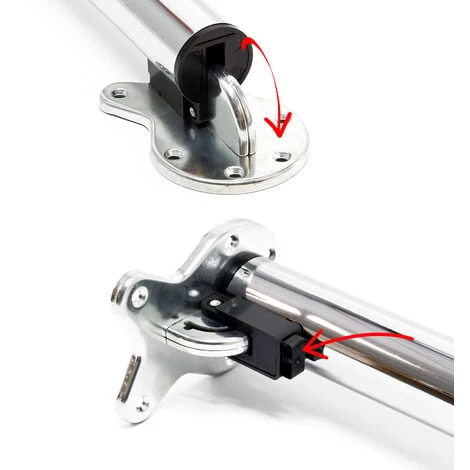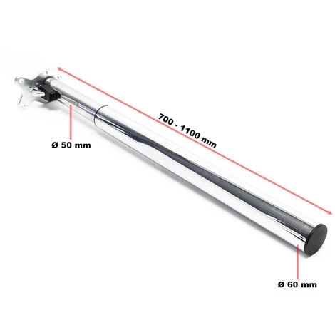 | Dimensions | Diamètre: Ø 50 / 60 mm Longeur: 700 – 1100 mm plaque de fixation |