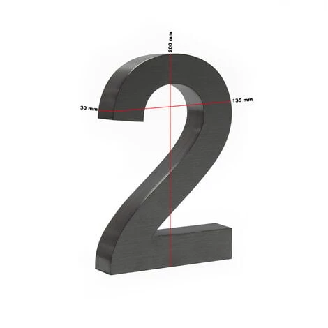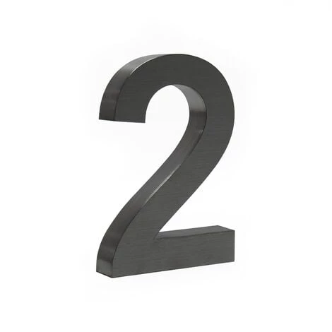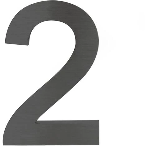 Plaque Numéro Maison « 2 » Arial Anthracite 3D 20cm Acier fin Robuste