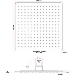 Pommeau de douche Carré 20x20cm Jet Effet pluie Acier inoxydable