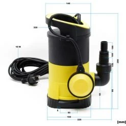 D’une puissance de 250 watts, la pompe peut débiter jusqu’à 5. 000 litres d’eau sale par heure à une profondeur d’immersion maximale de 5 mètres. La hauteur de débit maximale est de 6 mètres.