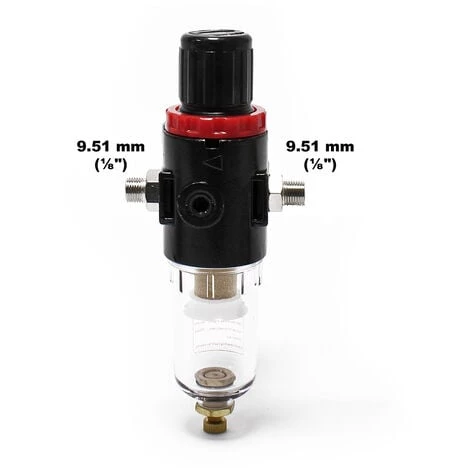 Vous recevrez un rĂ©gulateur de pression avec sĂ©parateur d’eau et manomètre. (Le manomètre et le vissage d’entrĂ©e ne sont pas prĂ©montĂ©s)