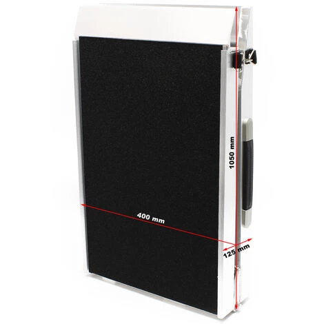 Les rampes de voiture pour chien en aluminium sont particulièrement appréciées par les propriétaires de chiens vu leurs caractéristiques spéciales et avantageuses. L’aluminium est un matériau léger , facile à nettoyer et d’une belle apparence de surcroit. Si vous avez besoin d’une rampe de voiture pour chien relativement plus grande, vous ressentirez l’avantage de ce matériau qu’est l’aluminium. En raison de la taille de ces rampes de chien, le poids augmente. Grâce au matériau aluminium, le poids ne pose désormais plus de problème. Cette rampe de voiture pour chien se plie facilement (Dimension pliée: 1050 x 400 x 125 mm) et est confortable à porteren raison d’un poids net de 7,9 Kg seulement vous offrant l’avantage d’un stockage peu encombrant. . La rampe se distingue également par une surface antidérapante (Revêtement en papier de verre) afin d’assurer à votre chien une montée en toute sécurité. Vous pouvez utiliser la rampe pour chien pour maintes objectifs: elle sont idéales pour, à titre d’exemple, les chiots, pour chiens petits et grands , pour chiens âgés , pour chiens souffrant d’obésité, ou blessés (de dysplasie de la hanche par ex.) , ou pour chiens malades ou fraîchement opérés. Ces chiens ne sont donc plus capables de surmonter une certaine hauteur de leur propre force. Leurs articulations doivent absolument être ménagées. Une rampe pour chien leur permet une montée en toute sécurité et douceur . Pour le propriétaire de chien, cette rampe signifie clairement: fini les descentes et montées de chien pénibles et surtoutfini les