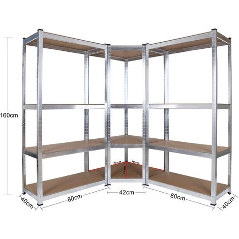 Un rayonnage d‘angle pratique pour mettre de l‘ordre et gagner plus de place dans votre garage, votre cave ou bien votre débarras. Grâce à sa construction angulaire, l‘armoire s‘adapte à presque chaque coin et vous permet de gagner de l‘espace sans encombrer la pièce.