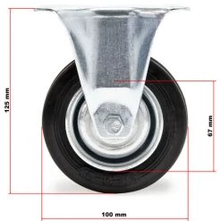 Roulette fixe 100mm avec Roue caoutchouc Jante métal Transport meuble