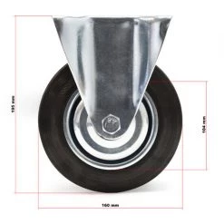 Roulette fixe 160 mm avec Roue caoutchouc Jante métal Transport meuble