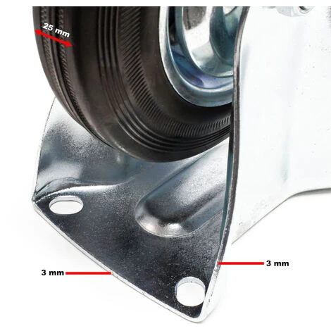 Vous recevrez une roulette fixe en caoutchouc avec une jante en métal incluse et une plaque de montage robuste pour le montage sur des équipements de transport.