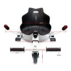 Le siège du kart est compatible avec tous les balance scooters (Hoverboard) courants de 16,5 cm (6,5″), 20,3 cm (8″) et 25,4 cm (10″) et supporte une charge totale jusqu’à 120 kg grâce à son châssis robuste en acier. La planche peut être transformée en scooter en quelques étapes simples.